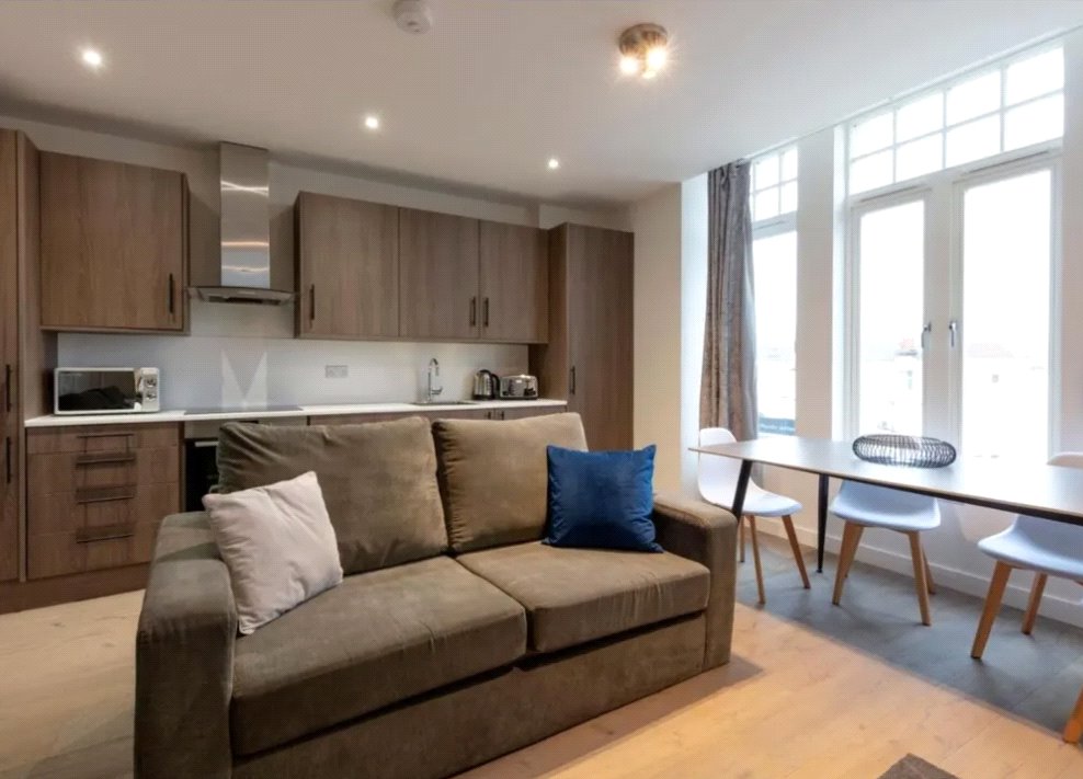 This property benefits from lots of light and space throughout comprising an open plan reception room with brand new kitchen appliances, two double bedrooms (one is en-suite), a modern bathroom and a communal terrace.